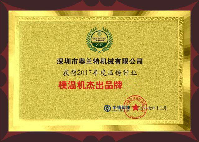 一年一度的壓鑄行業(yè)模溫機(jī)模溫機(jī)杰出品牌評(píng)選經(jīng)過(guò)兩個(gè)多月結(jié)束啦,深圳奧蘭特機(jī)械壓鑄模溫機(jī)獲得壓鑄模溫機(jī)杰出品牌之一。奧蘭特模溫機(jī)在2016年也曾獲得品牌。